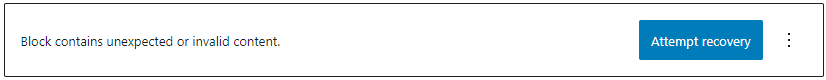 - Attempt recovery – WordPress will attempt to recover the correct markup of the block (it’s not always successful). We’ll do that in a second.