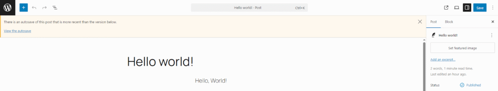 Autosaves are an interesting part of this system. The WordPress Editor takes an autosave of your content every 60 seconds. This is by default, according to my testing, enabled only for posts and pages. An autosave is just a revision.